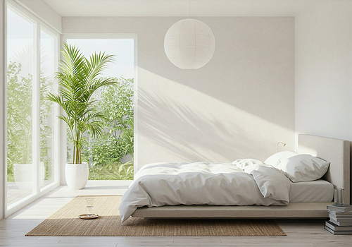 Summer daily life_Photo image of men and women covered with blankets on the bed
